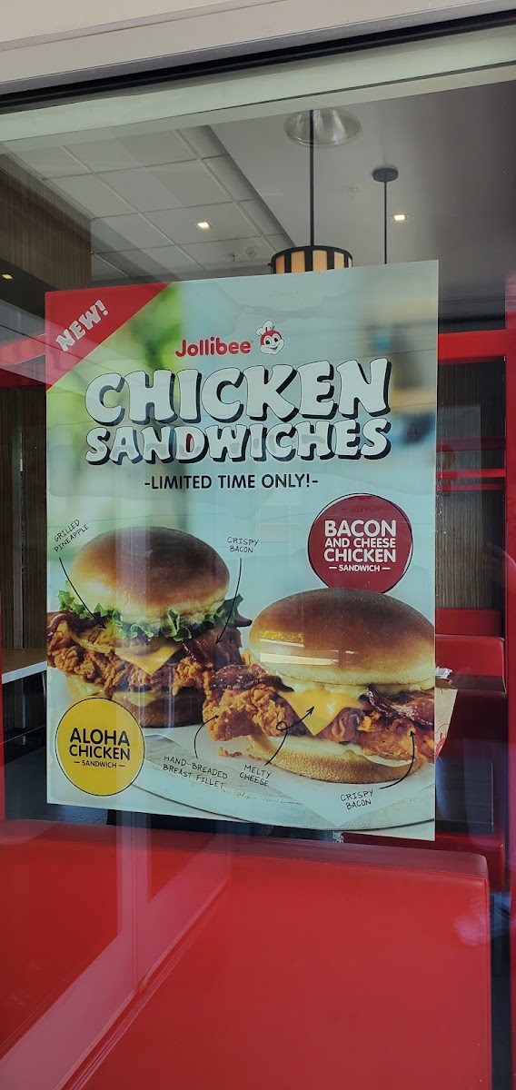 Our Aloha Chicken Sandwich starts with a crispy juicy hand-breaded chicken breast fillet, topped with a grilled pineapple ring, crispy bacon, fresh lettuce, and melty cheese, spread with Aloha Dressing on a toasted brioche bun. Served with a side of regular Jolly Crispy Fries and your choice of fountain drink.