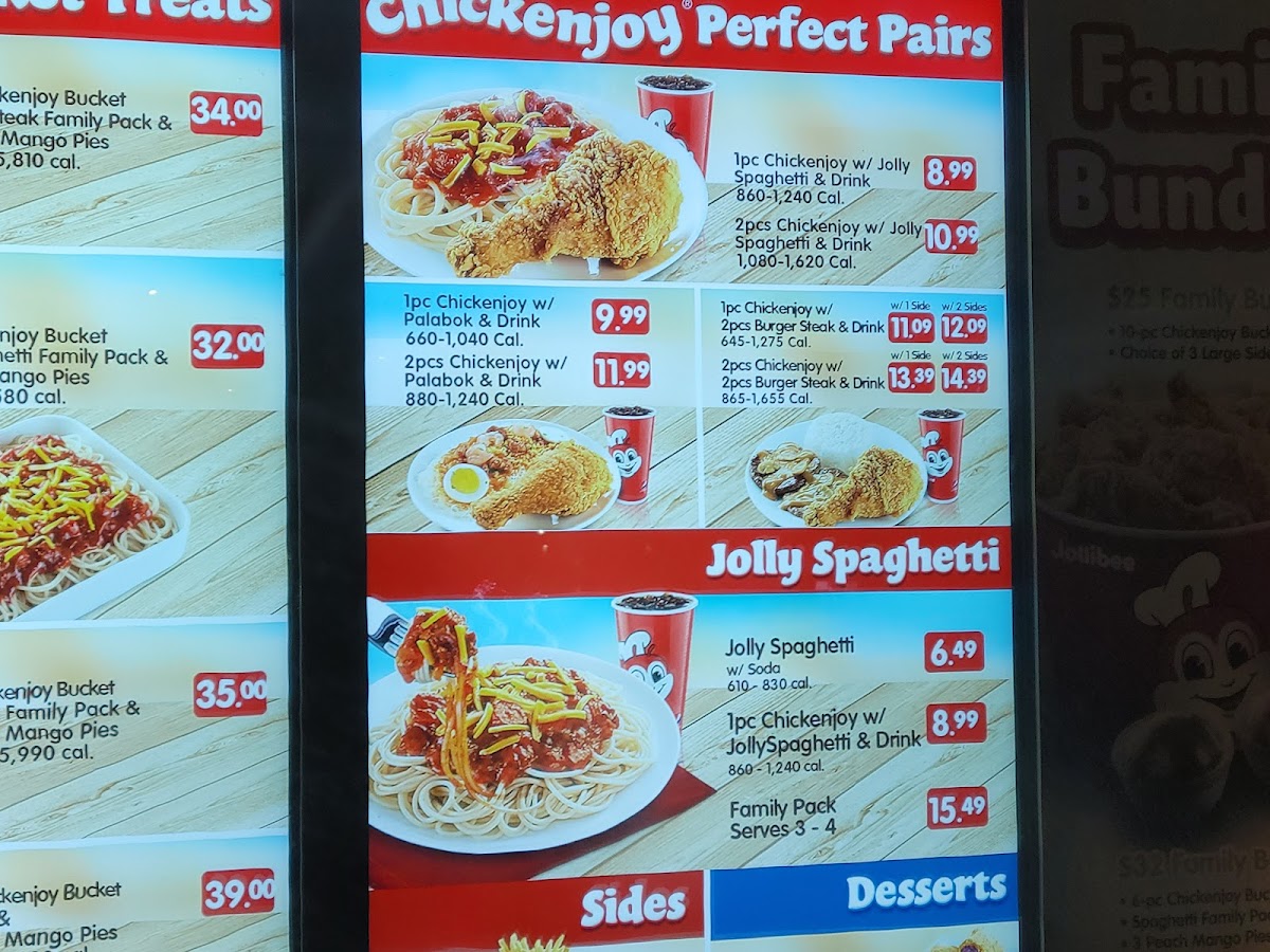 6pc of our next-level crispy, next-level juicy Chickenjoy fried chicken (3 legs, 3 thighs, Choose between Original or Spicy) served with a Jolly Spaghetti Family Pack and 3 pies.
